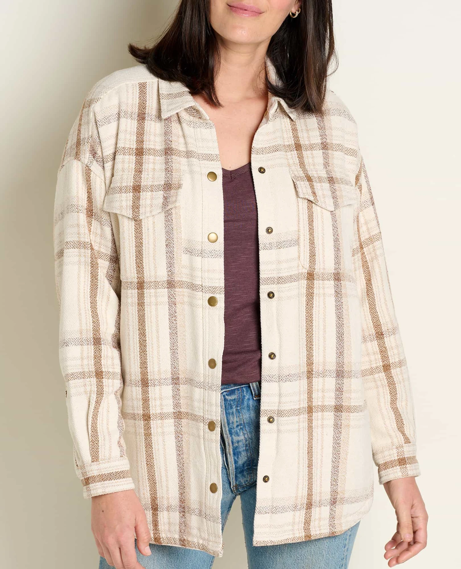 Why shouldn’t every layer have t-shirt softness? We love this shirt jacket for its cozy knit jersey lining, metal snaps and swoon-worthy drape. Pretty sure you’ll feel the same.