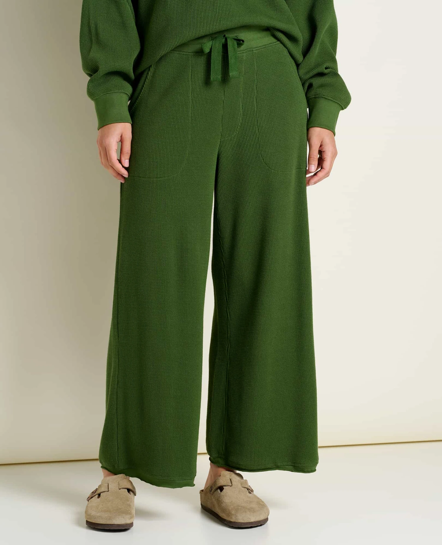 Pants with the soul of an old-school base layer in a flowy wide leg that lets you move to your own rhythm. Made from cozy 100% organic cotton waffle knit with a rolled jersey trim edge for bonus style points.
