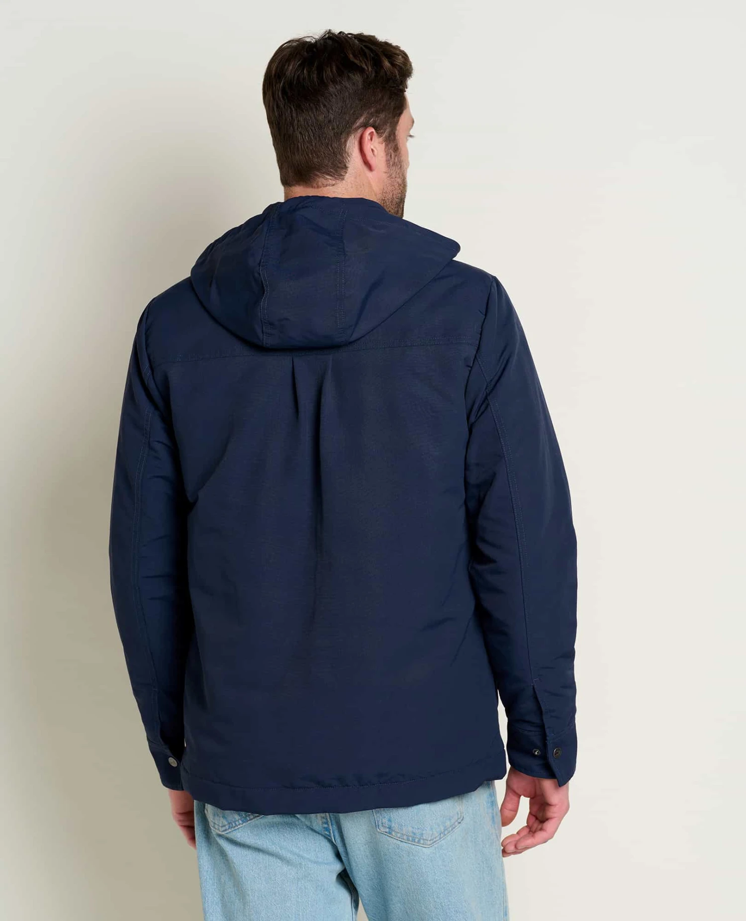 Features: Water/wind resistant with a PFC-free DWR finish, 40 GSM recycled polyester insulation, stash hood, snap placket and two-way zipper closure, two drop-in fleece lined chest pockets with snap closure, internal zip secure stash pocket at chest, two drop-in fleece lined hand pockets with snap closure, and flannel lining