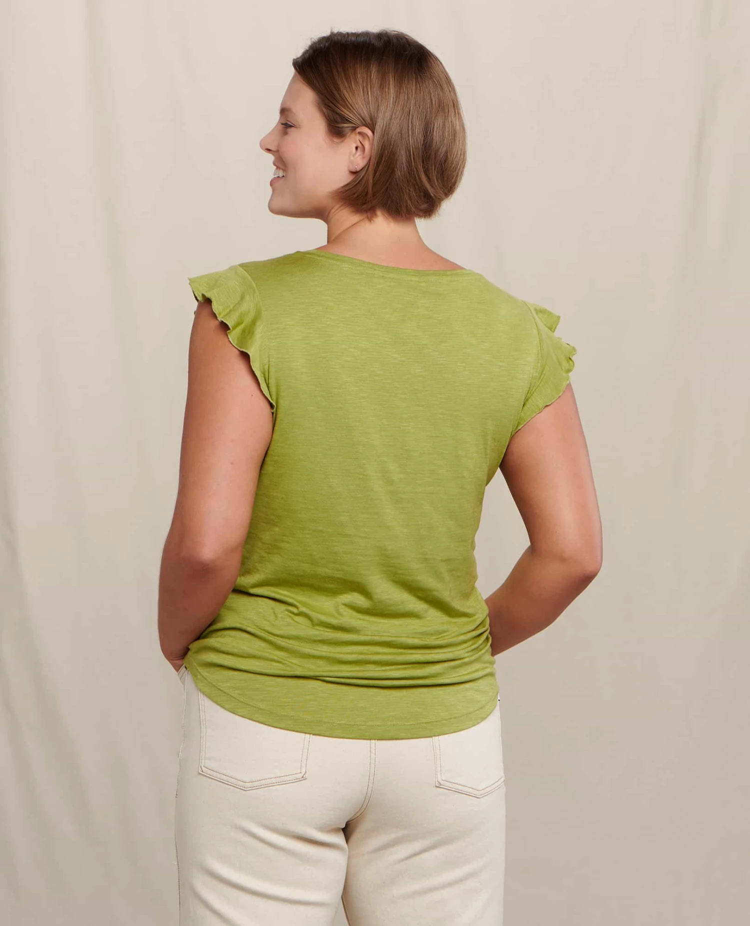 Flirty ruffle cap sleeves make this tee anything but basic. Made from our favorite Samba Dia fabric, this feminine t-shirt is a fresh twist on a classic scoop neck t-shirt.