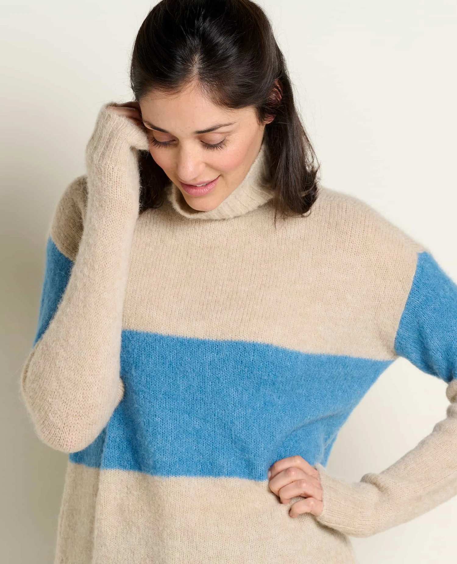 Fit: Relaxed fit, turtle neck, drop shoulder, 22.5″ length