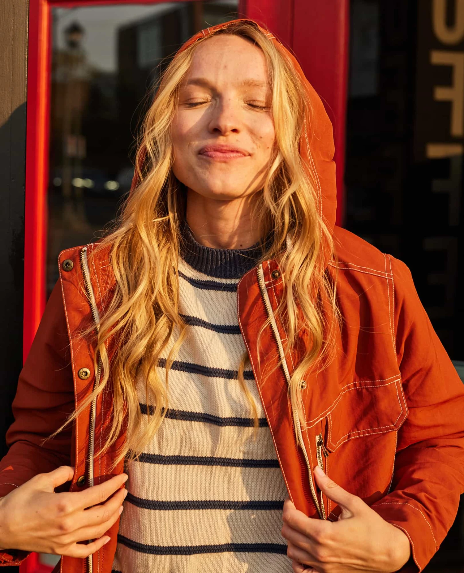 Simplicity, function where it counts and straight talkin’ good looks. Eco-friendly fabrics like recycled polyester and organic cotton mean this versatile outer layer will keep you dry and on Mother Nature’s good side.